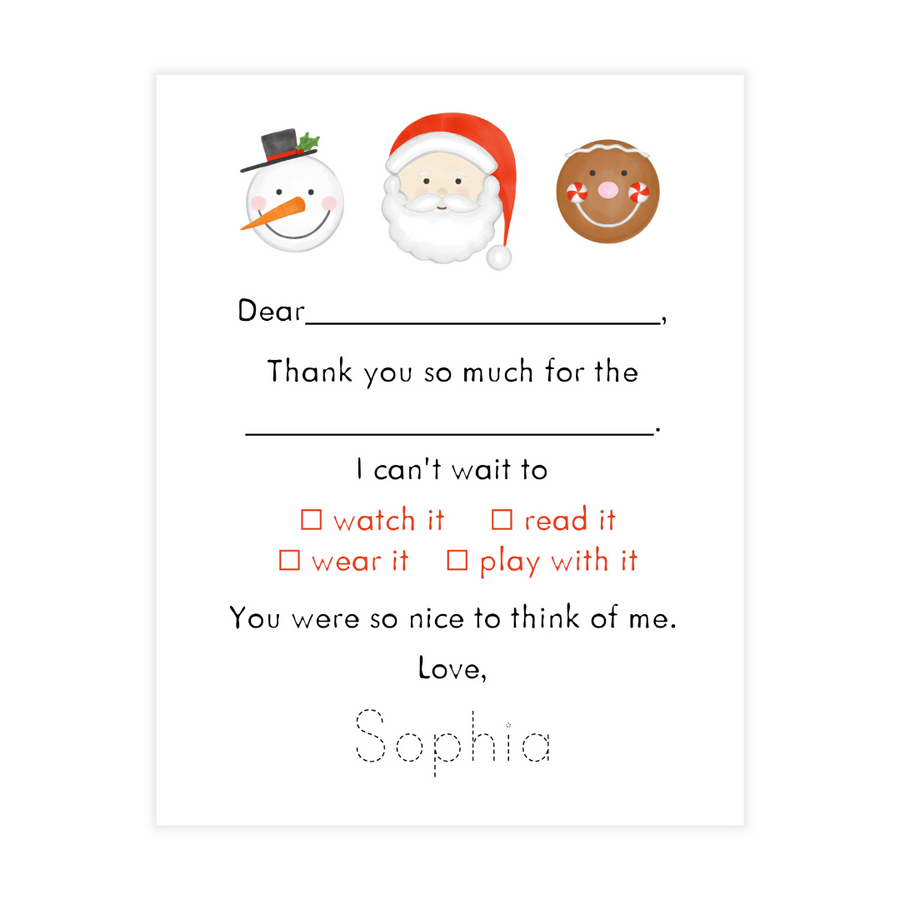 This set of 10 flat note cards features a fill-in style just for kids! Take away the frustration of writing a thank you note and instill a good habit that's fun instead! Personalized with a "dashed" font so kids can easily trace their name.