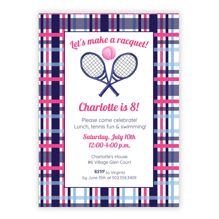 A tennis themed birthday party has lots of potential for fun wording: "Let's make a racquet", "swing on by", "let's have a ball!" and more!