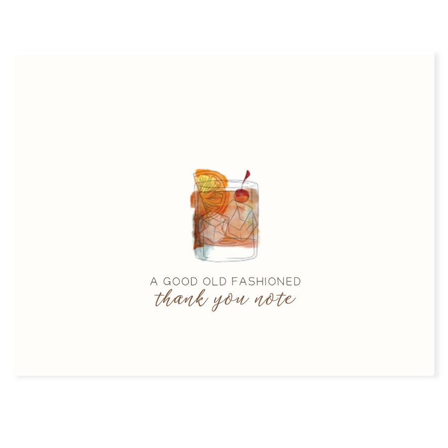 This set of 10 folded note cards features our Good Old-Fashioned design. Perfect for the bourbon lover and makes a great gift- even for a guy!