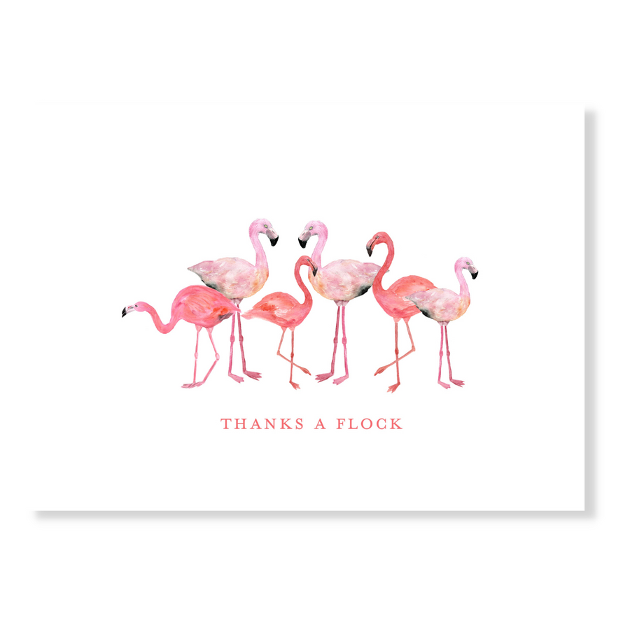 A cheeky set of thank you notes with a flock of flamingos! This set of 10 folded note cards is beautifully designed in watercolors and printed on premium heavyweight eggshell paper.